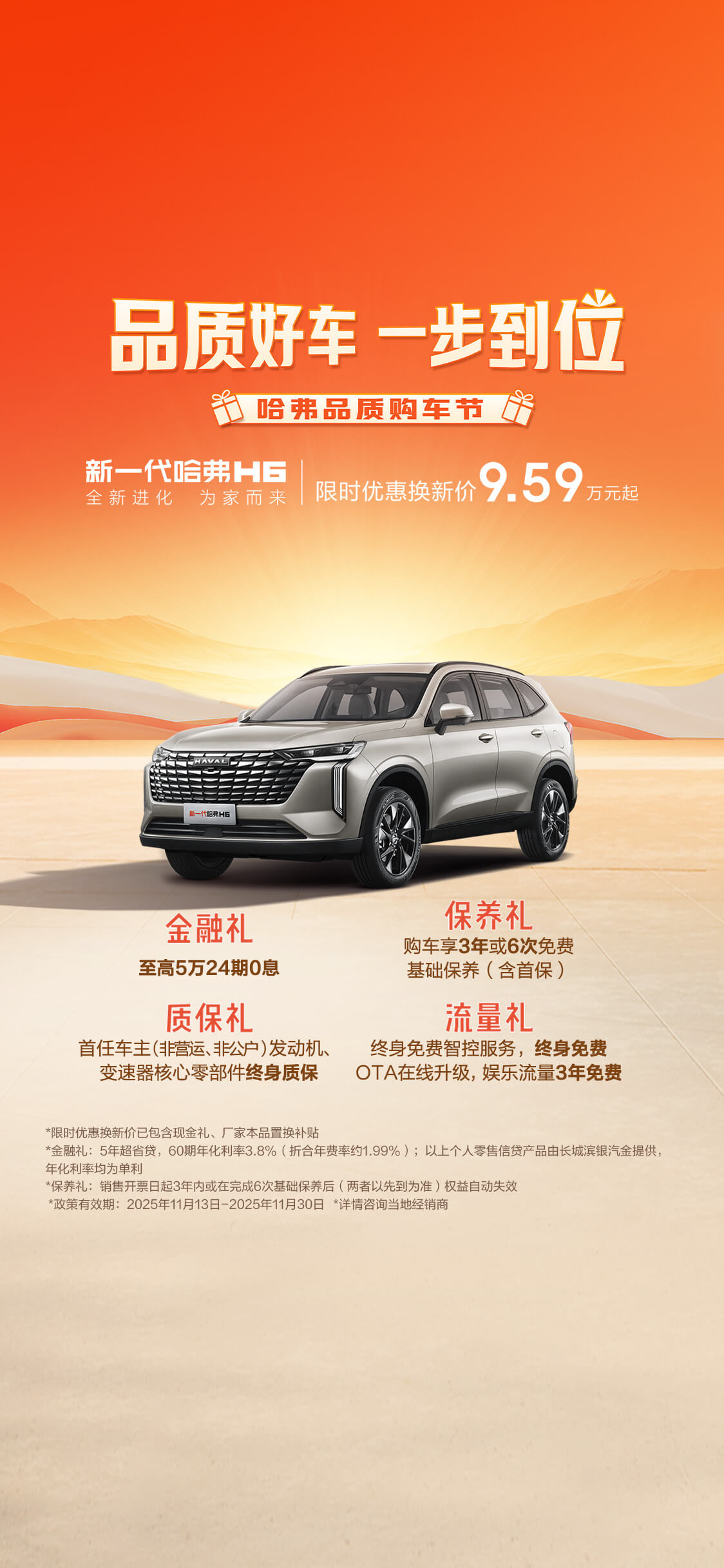 *政策有效期:2025年11月13日-2025年11月30日,详情咨询当地经销商。