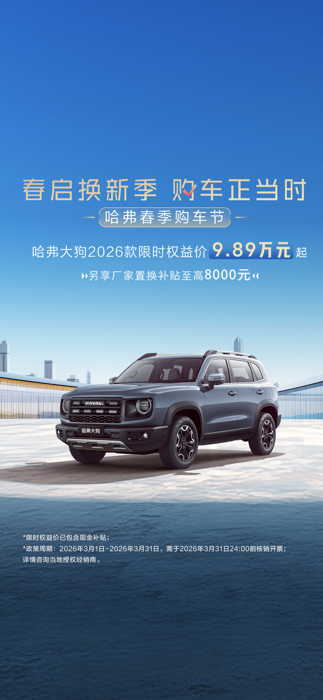 ⑥ 政策周期:2026年3月1日-2026年3月31日,需于2026年3月31日24:00前核销开票,详情咨询当地授权经销商。